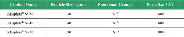 Knowledge & Benefit Tech’s affinity chromatography media were prepared by monodisperse, highly crosslinked polyacrylate microspheres. The affinity chromatography media are produced by first forming a hydrophilic layer on the microspheres. Then, nickel ion (Ni2+) functional groups are chelated onto the hydrophilic layer. Knowledge & Benefit Tech’s affinity chromatography media have high selectivity in separation of histidine labeled proteins.