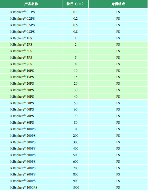 50纳米到1000微米之间任意大小、粒径均一的聚苯乙烯(PS)